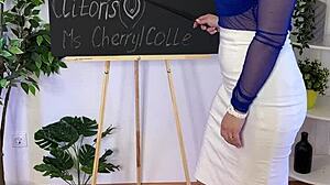 hot milf teacher shows clit in stockings domination lesson!