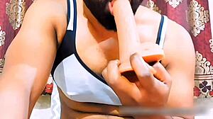 Brunette teen's anal dildo play intrigues.