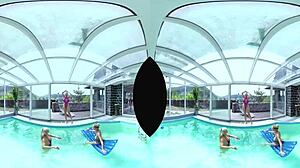 Big Tits Blonde Foursome Rocks Poolside!
