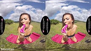 Solo brunette babe viks angel plays with big dildo in vr fun
