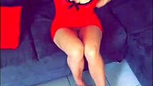 Kıllı ladyboy mavi elbisesini çıkarıp küçük yarrakını okşuyor izledim