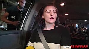 pretty petite haley spades licks cum off chocolate cock in gangbang