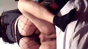 That super sexy milf ended up with jizz all over her fishnet bodysuit after sensual cock action