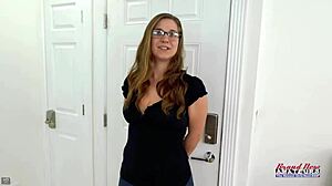Petite femdom Summer Col ruins courier Chanel Camryn's tight pussy with strap-on destruction