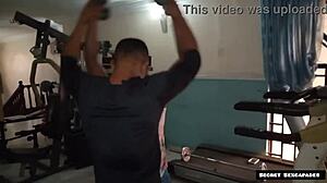 wow, this big-assed milf instructor spreads wide after workout. she craves that protein shot on her sweaty body!