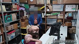 Φύλακας γωνιάζει κλέφτρα σε πίσω δωμάτιο για έντονη ανάκριση