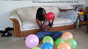 Watch ebony fetish babe inflate huge balloons french style!