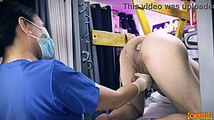 Dominafire's nurse stretches slave ass in latex rectal exam