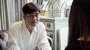 Bu Koreli BDSM sahnesinde, büyük memeli Asyalı köle efendisiyle softcore öpüşme ve meme oyunu yapıyor