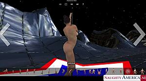 Stunning 3D cartoon striptease gameplay in nightclub bathroom scene