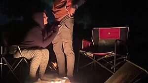 curvy camper gets big cock creampie by campfire outdoors