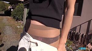 on the stairs outside, she got her pussy satisfied with toys and licking but before her jeans got ripped, right?