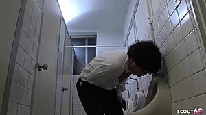 Nerd Student Caught in Quick Toilet Bang with German Teen Anni