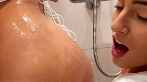 Lesbian Shower Sloppy Double BJ Facial Cumswap!