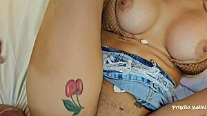 Big black cock pulls shorts aside and fills tight pussy with cum