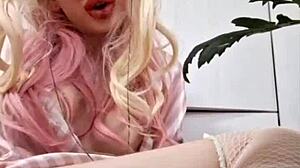 Lady in pink teases pussy squirt from odd angle pov