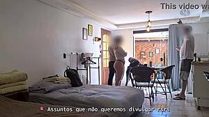 In a homemade Brazilian cuckold setup, an old wife humiliates her husband with a big guy from the internet.
