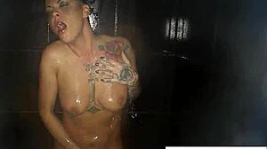 Brunette - Clothes ripped - Wet - Striptease - Close-up
