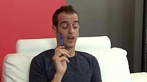 Pro tranny gets soaked in cumshot after anal masturbation