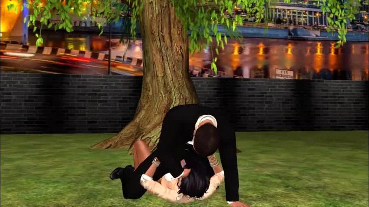 A wife and stepmother share sweet kisses in 3D hotel game
