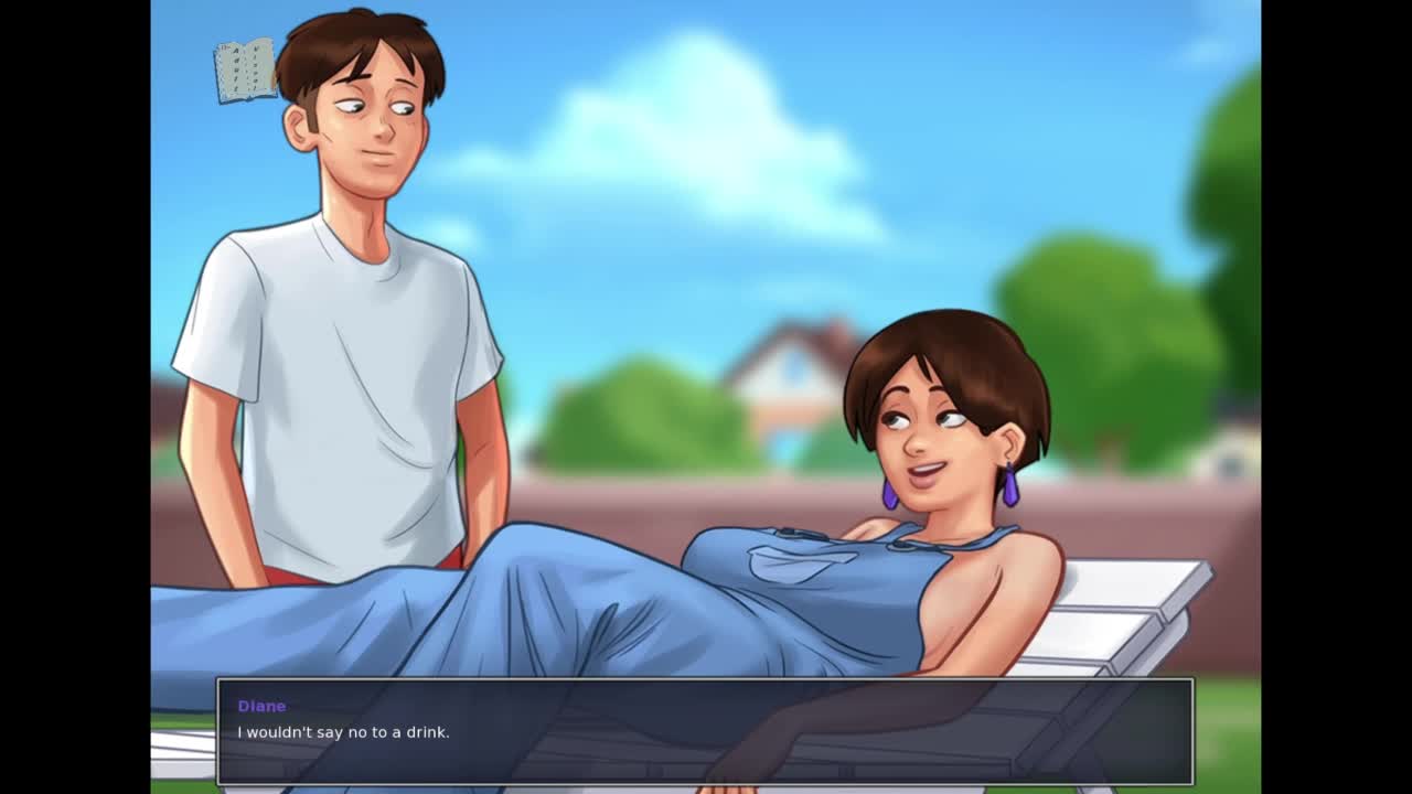 Summertime saga features threesome with step-sis and milf in hentai game.